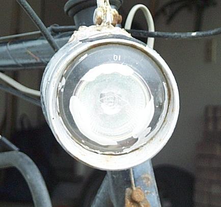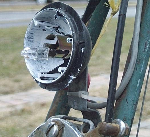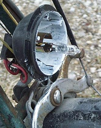 Here is a picture of my headlight system; with a 20W halogen bulb + reflector glued into an old bike-light.